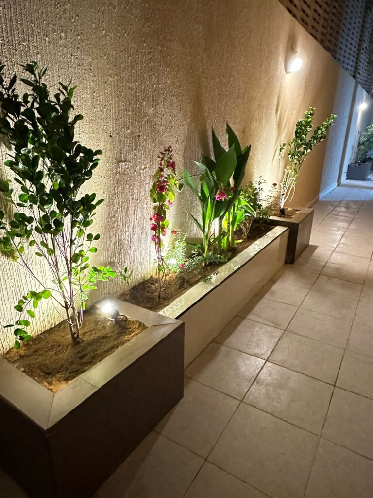 مع إنجاز، نصمم حديقة منزلك في جدة أو مكة بأسلوب فني يجمع بين الجمال الطبيعي والتوزيع المثالي للنباتات والممرات والإضاءة.
